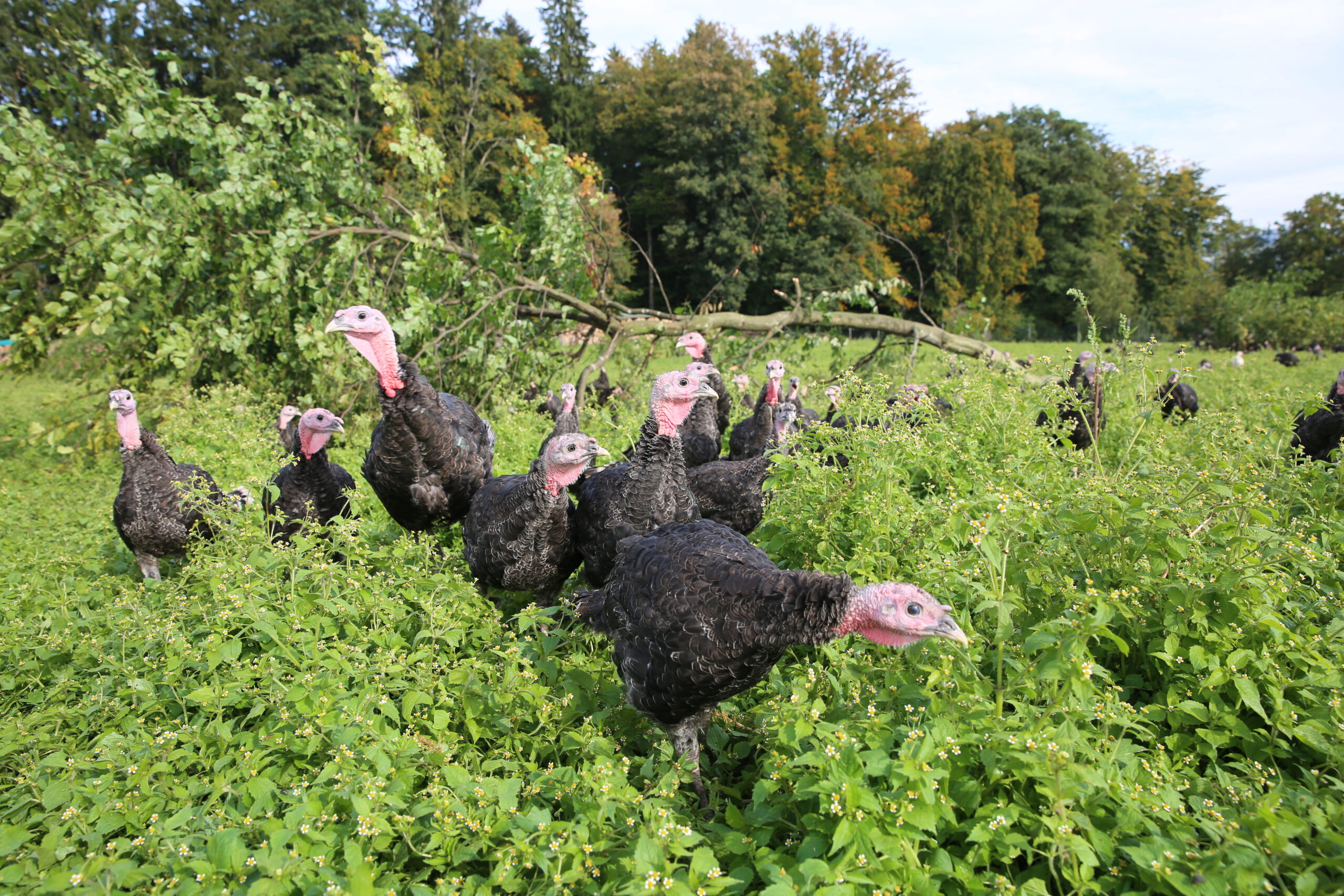 Unsere Truthähne, Perlhühner und Hühner verbringen den ganzen Tag auf der Weide und können sich weiträumig bewegen. All unsere Tiere erleben so eine natürliche und schonende Aufzucht. Da die Tiere eine natürliche Aufzucht erfahren, sind die unten genannten Gewichtsangaben immer etwas schwierig zu bestimmen. Wir sind aber bemüht den Wünschen unserer Kunden gerecht zu werden.